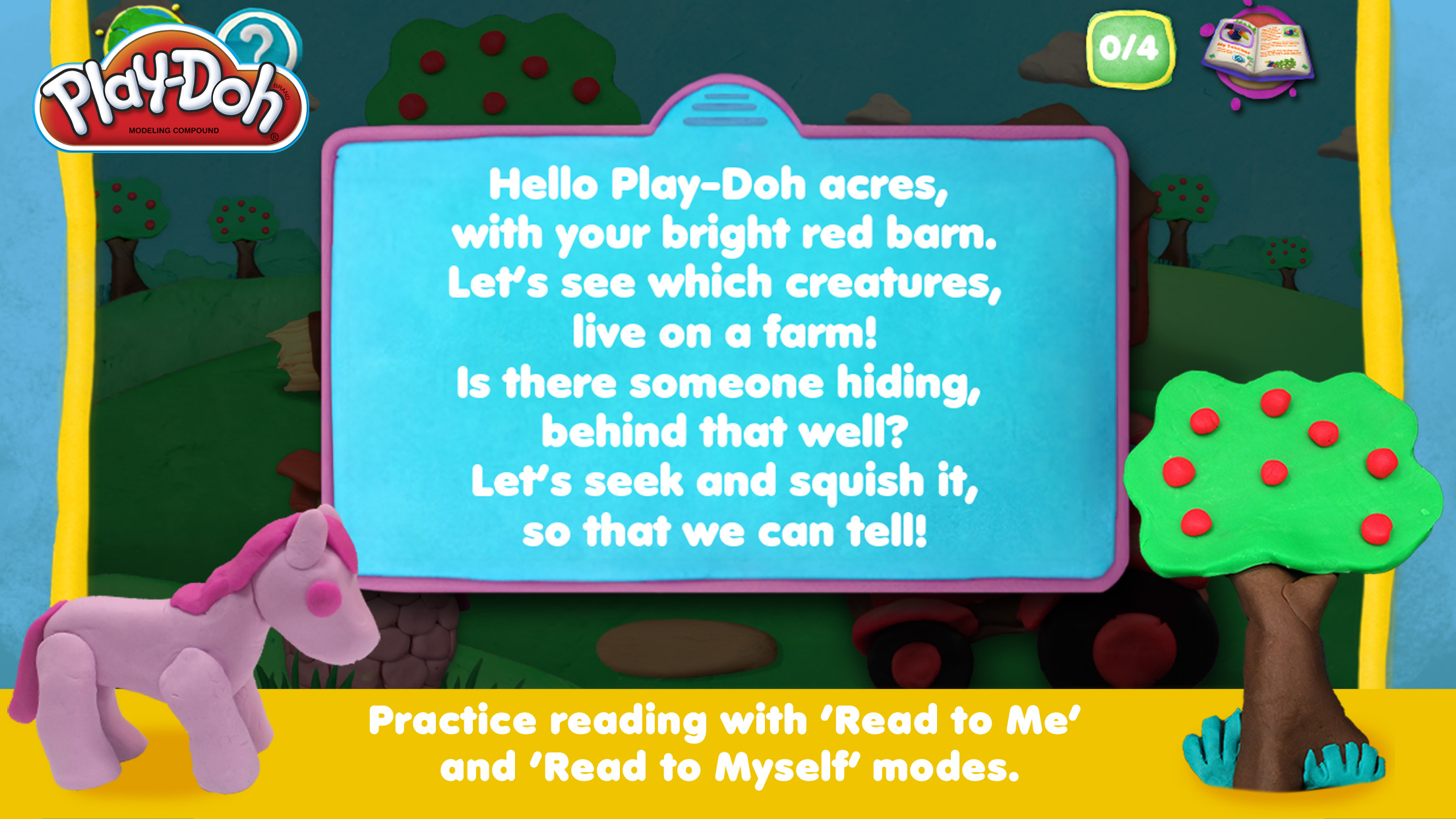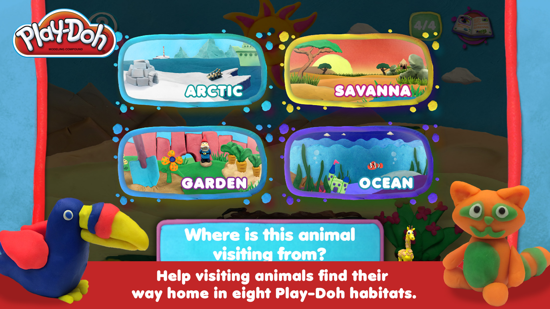 Play-Doh: Seek and Squish is an original storybook made entirely of digital Play-Doh! In this ‘Seek and Squish’ adventure, friendly animals have gathered to welcome you, but suddenly, they are hiding all over a vibrant Play-Doh world. To find the animals, you need to squish your way through a variety of gorgeous Play-Doh landscapes with swipes and taps of the screen. Can you find all the animals in every habitat?